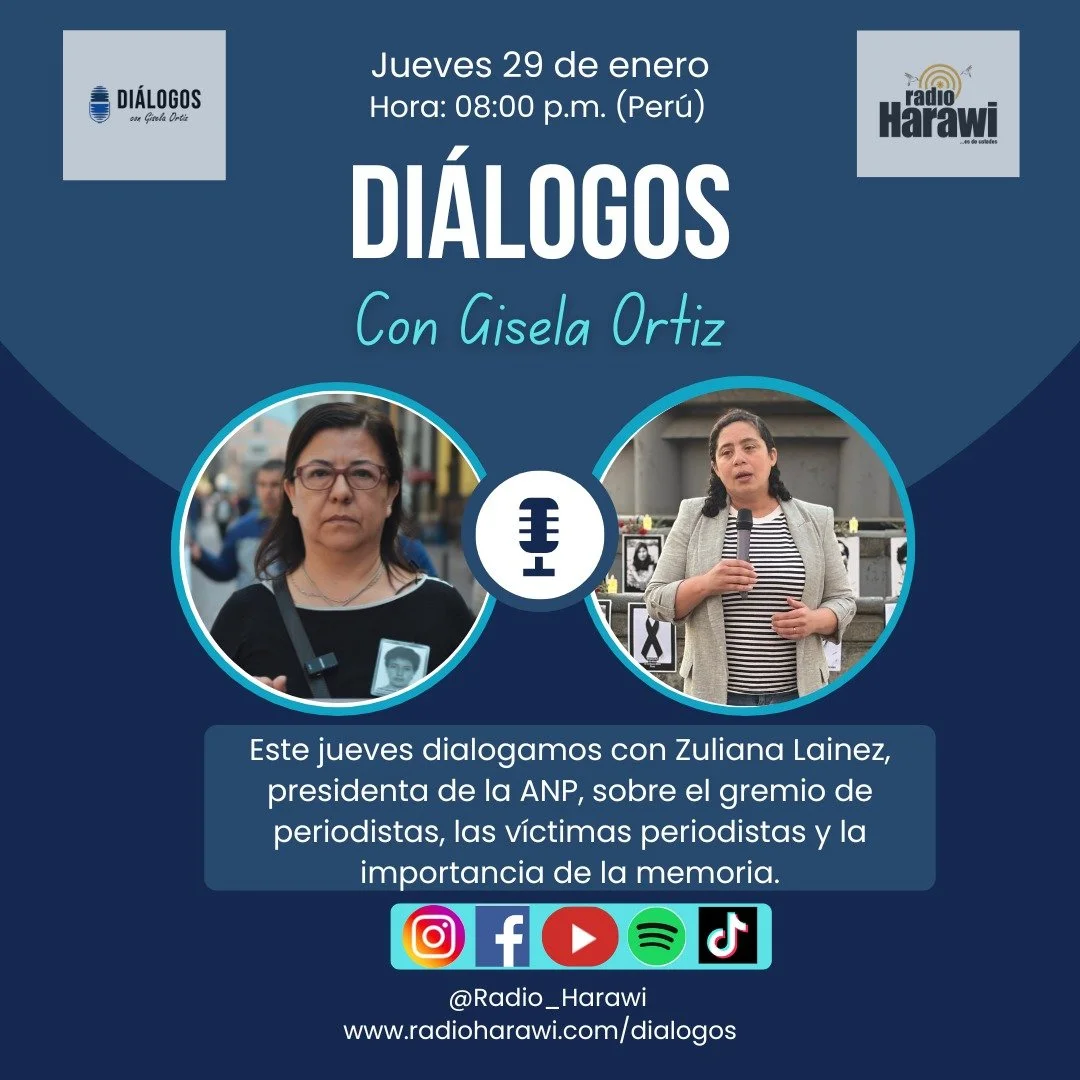 In this episode of Gisela Ortiz, Gisela speaks with Zuliana Lainez, president of the National Association of Journalists of Peru (ANP), to examine the role of the journalism profession in defending human rights and preserving historical memory. Drawing on the Uchuraccay case, in which eight journalists were killed on January 26, 1983, Gisela and Zuliana will reflect on networks of solidarity and support for families, through the lens of truth, justice, and non-repetition, in the context of Peru’s internal armed conflict.